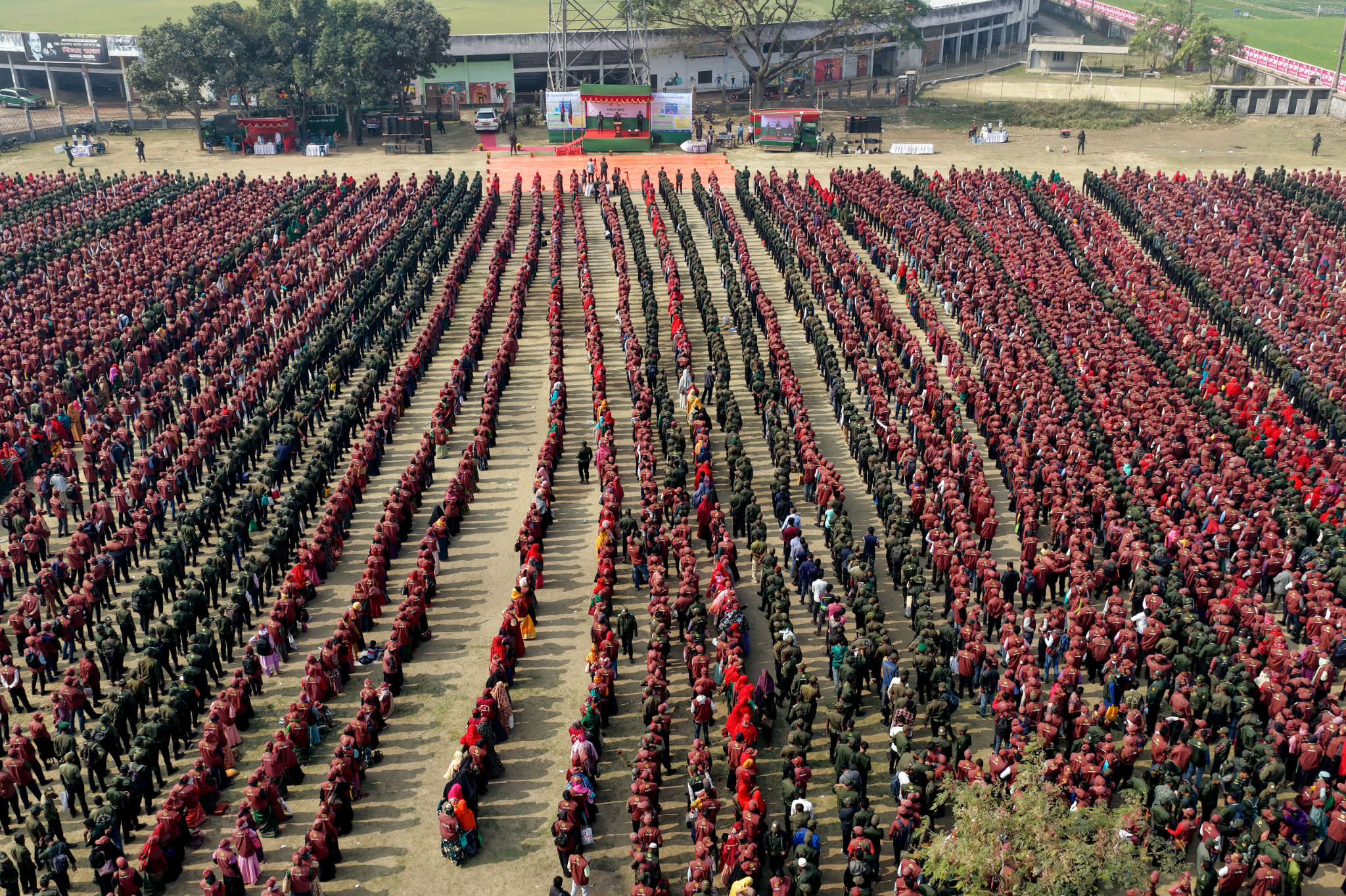 বগুড়া জেলার ১২টি উপজেলার ভোটকেন্দ্রে দায়িত্ব পালনের জন্য মনোনীত আনসার ও ভিডিপি সদস্যদের নিয়ে এই বিশাল সমাবেশের আয়োজন করা হয়।