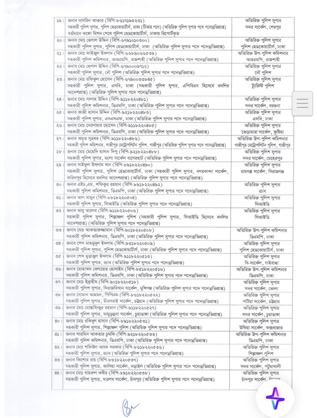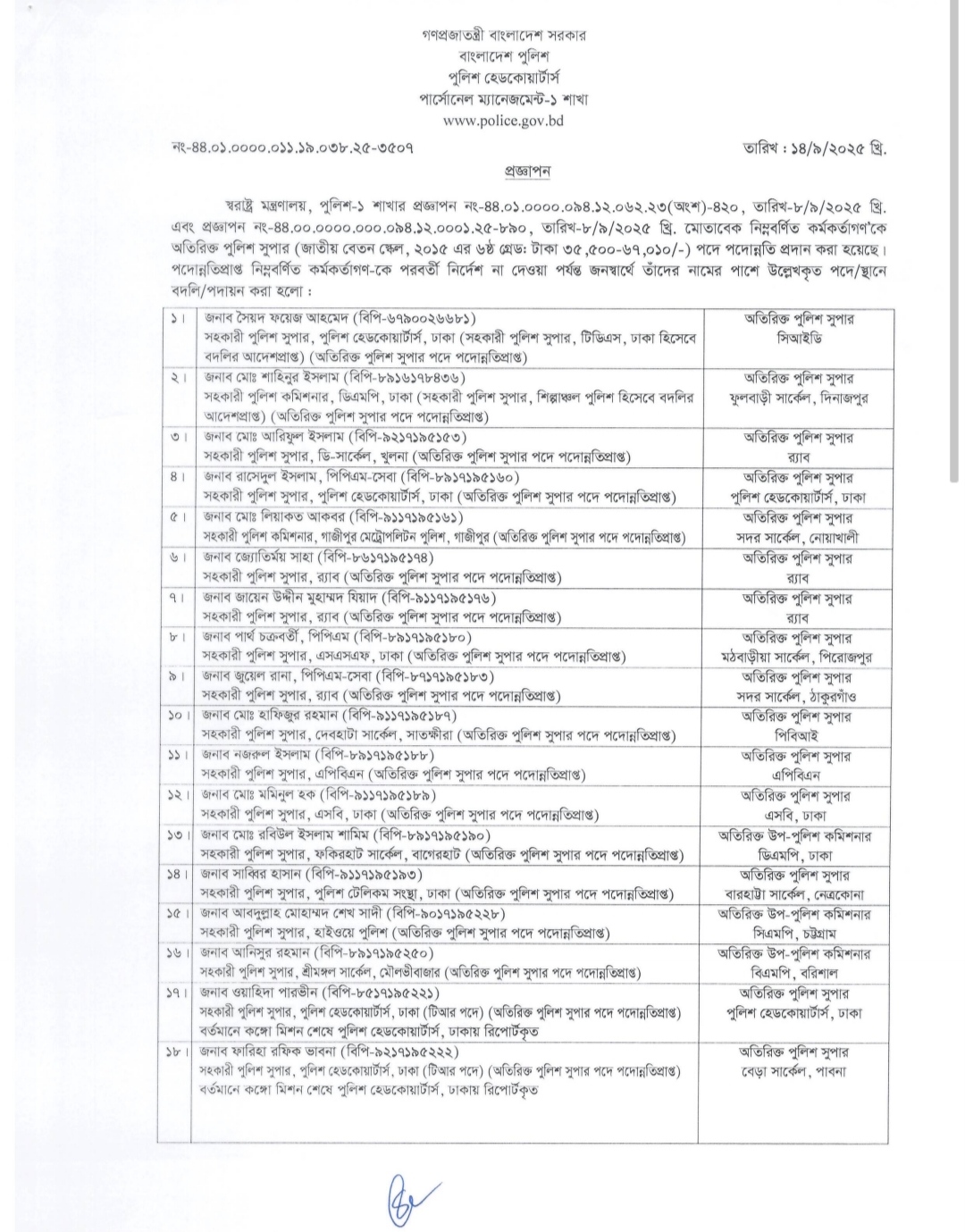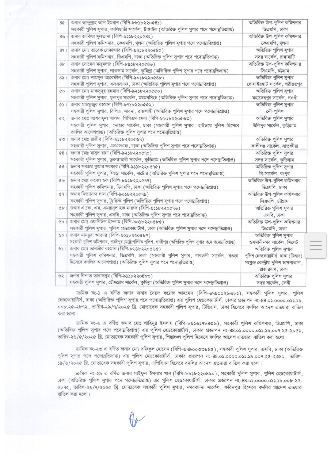 অতিরিক্ত পুলিশ সুপার পদমর্যাদার ৬২ কর্মকর্তাকে বদলি, জানুন কে কোথায়?