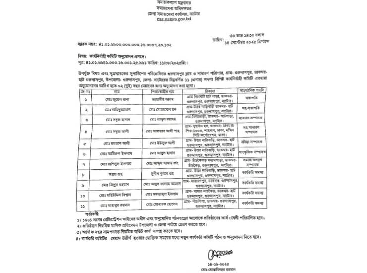 ১৪ সেপ্টেম্বর জেলা সমাজসেবা অফিস,নাটোরের উপ-পরিচালক স্বাক্ষরিত চিঠির মাধ্যমে এ অনুমোদন প্রদান করা হয়।