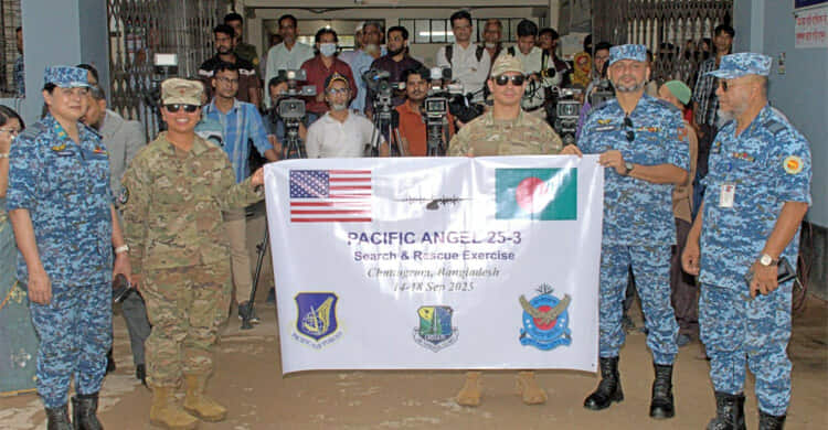 চিকিৎসা প্রস্তুতি,বিমান নিরাপত্তা, প্রকৌশল সহায়তা ও দুর্যোগ ব্যবস্থাপনা কার্যক্রমে সহযোগিতা বাড়ানোর লক্ষ্যে সাতদিনের ‘প্যাসিফিক অ্যাঞ্জেল ২৫–৩’ মহড়ায় অংশ নিয়েছে বাংলাদেশ বিমান বাহিনী ও যুক্তরাষ্ট্রের প্যাসিফিক এয়ার ফোর্স। মহড়ার অংশ হিসেবে ইউনাইটেড ন্যাশনস ইকোনমিক অ্যান্ড সোশ্যাল কমিশন ফর এশিয়া অ্যান্ড দ্য প্যাসিফিক (ইএনসিএপি) অনুষ্ঠান অনুষ্ঠিত হয়েছে।
