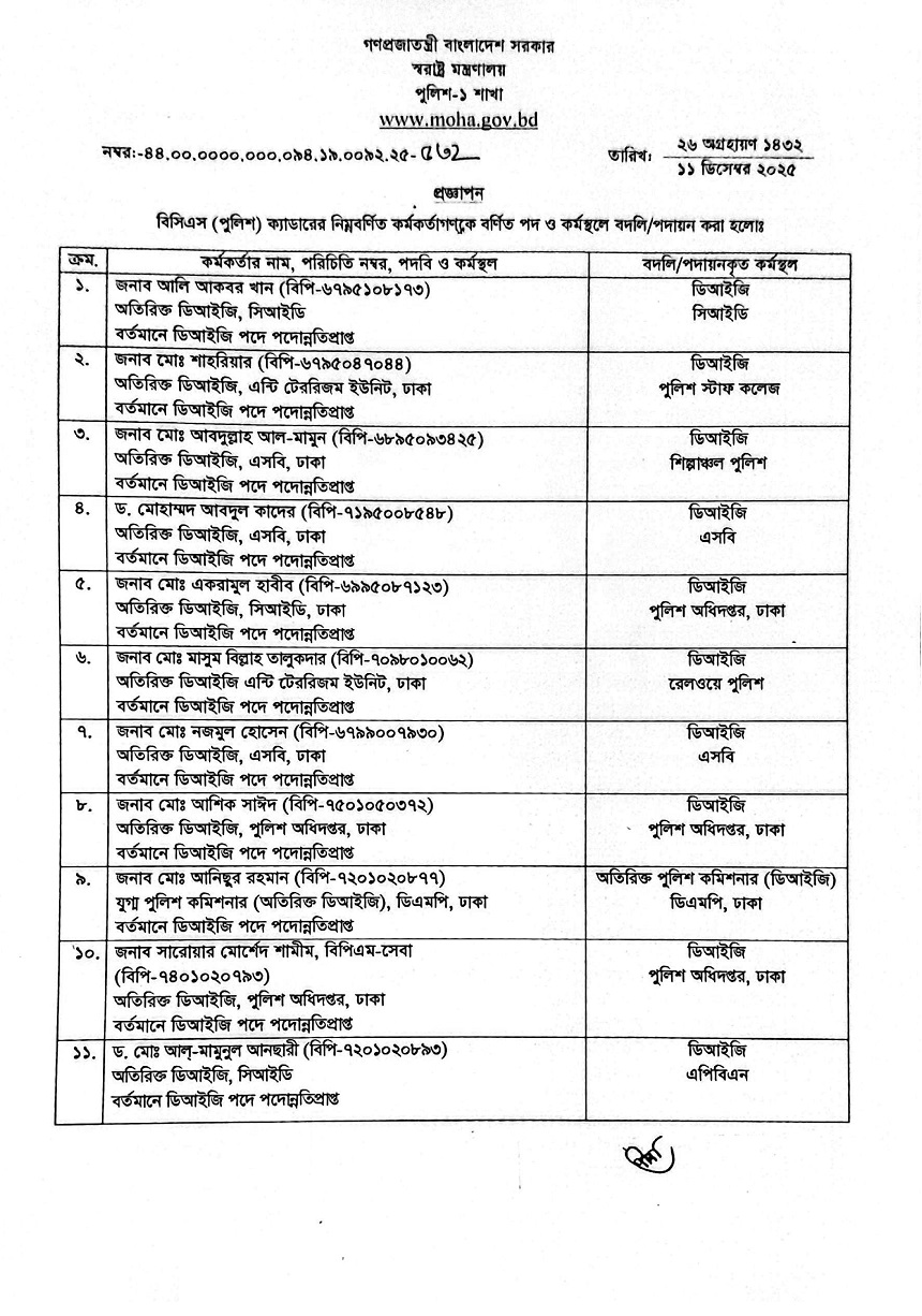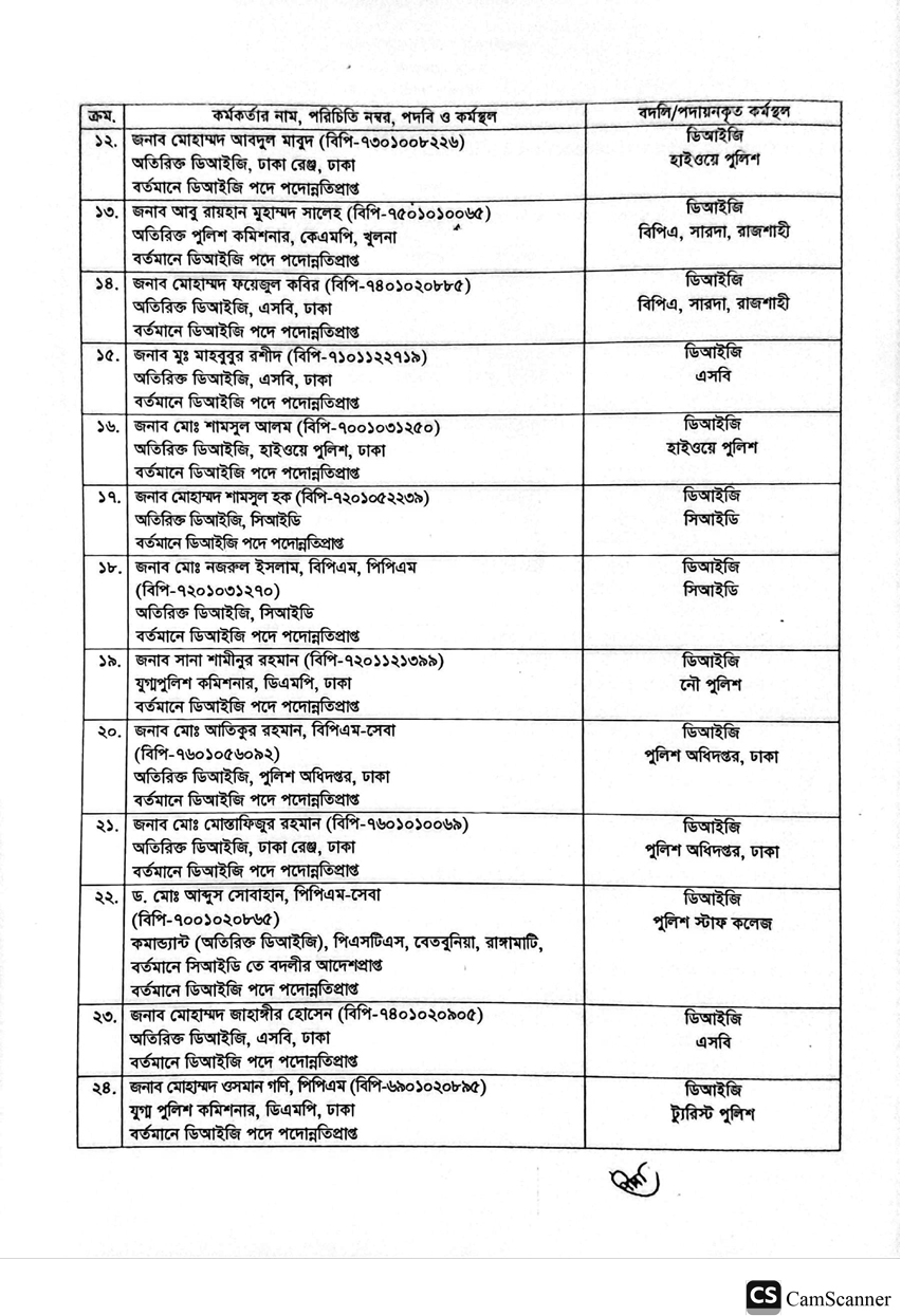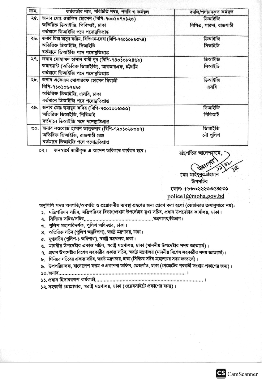 পদোন্নতি পাওয়া ৩০ ডিআইজির তালিকা দেখুন: