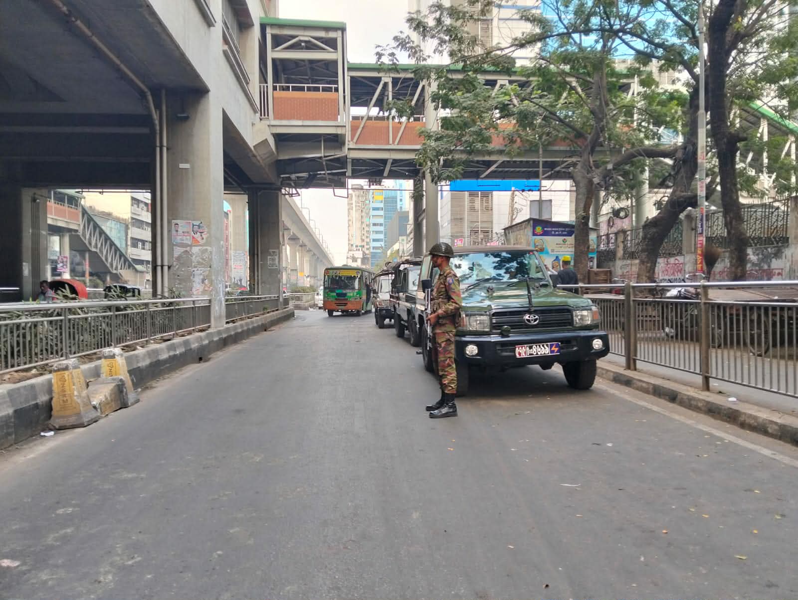 এ অবস্থায় যেকোনো ধরনের অপ্রীতিকর ঘটনা ঠেকাতে ঢাকার বিভিন্ন সড়কে নিরাপত্তা জোরদার করেছে আইনশৃঙ্খলা বাহিনী। গুরুত্বপূর্ণ পয়েন্টগুলোতে সতর্ক অবস্থান নিয়েছেন পুলিশ, র্যাব ও সেনাবাহিনীর সদস্যরা।