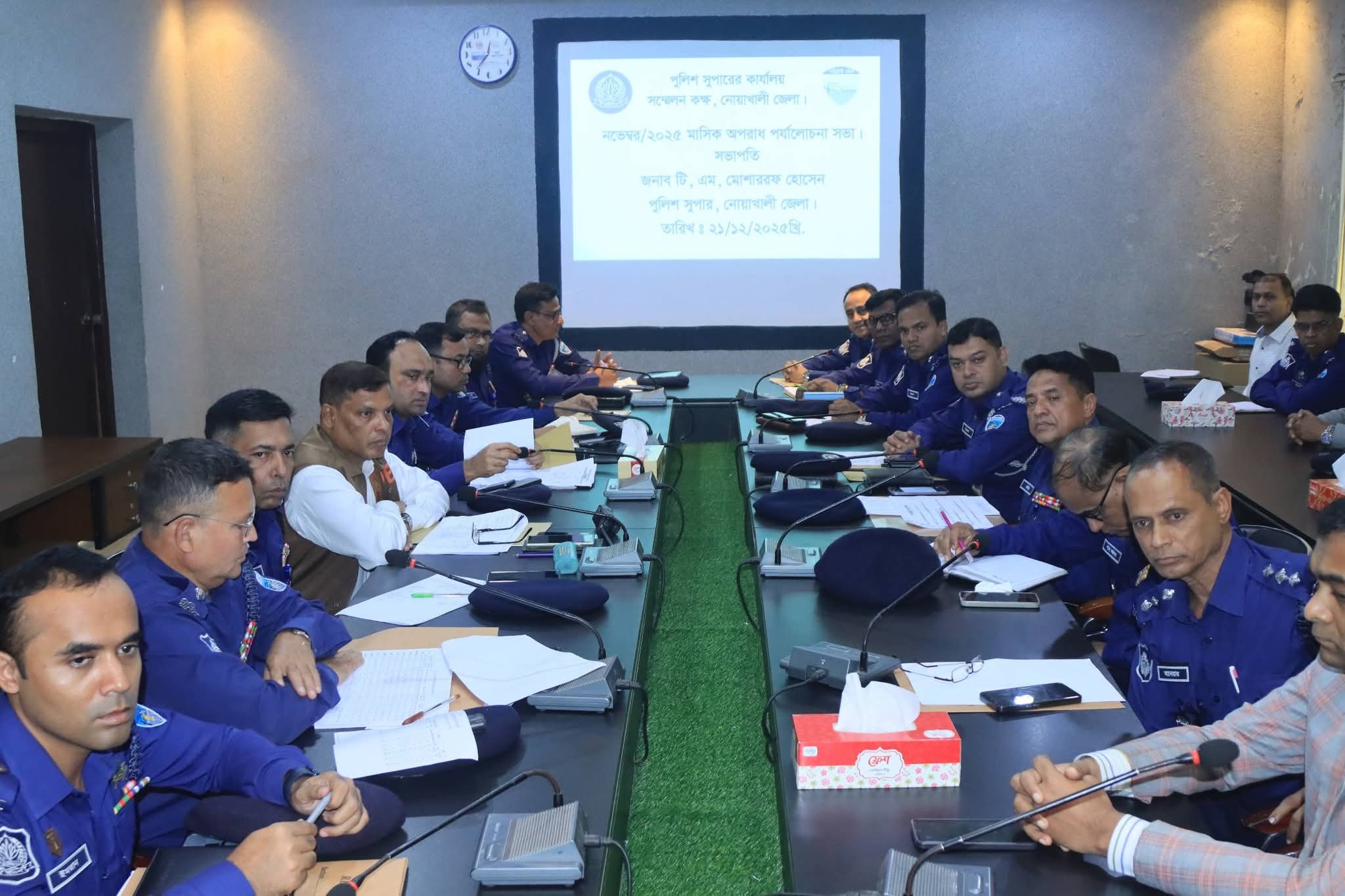 নোয়াখালী জেলার সার্বিক আইন-শৃঙ্খলা পরিস্থিতি আরও সুদৃঢ় করতে নভেম্বর-২০২৫ খ্রিষ্টাব্দ মাসের ক্রাইম কনফারেন্স/অপরাধ পর্যালোচনা সভা অনুষ্ঠিত হয়েছে।