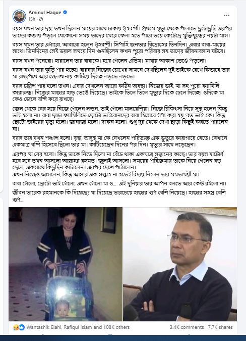 তারেক রহমানকে নিয়ে ফেসবুকে আবেগঘন পোস্ট আমিনুল হকের