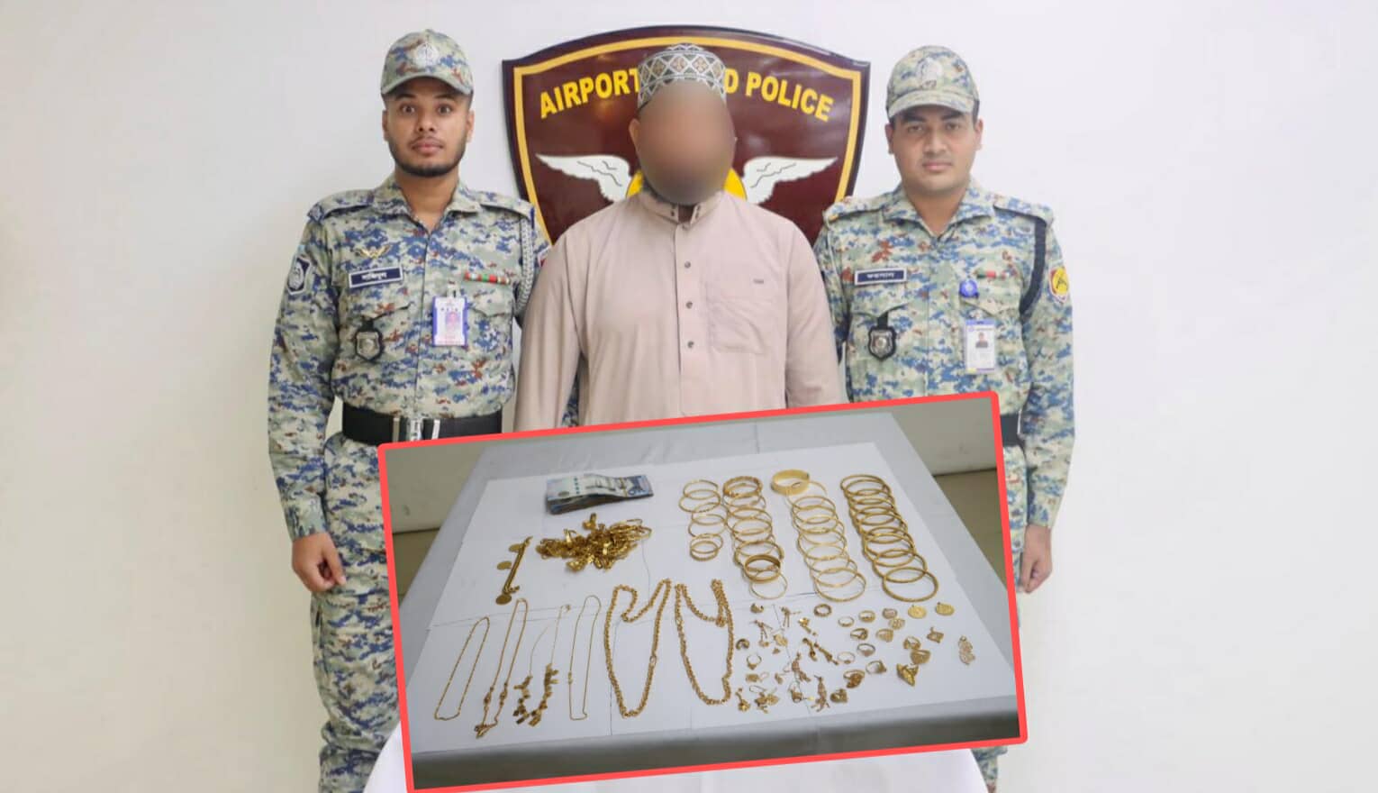 ঢাকা বিমানবন্দরে ১৩০০ গ্রাম স্বর্ণসহ আটক ১