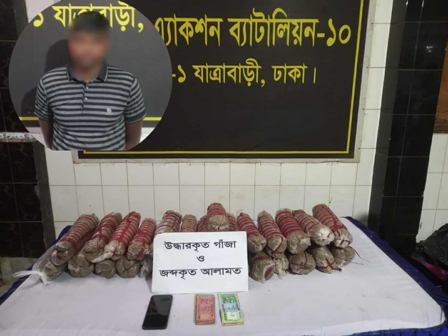 সায়েদাবাদে ১৪ কেজি গাঁজাসহ পেশাদার মাদক কারবারি গ্রেফতার