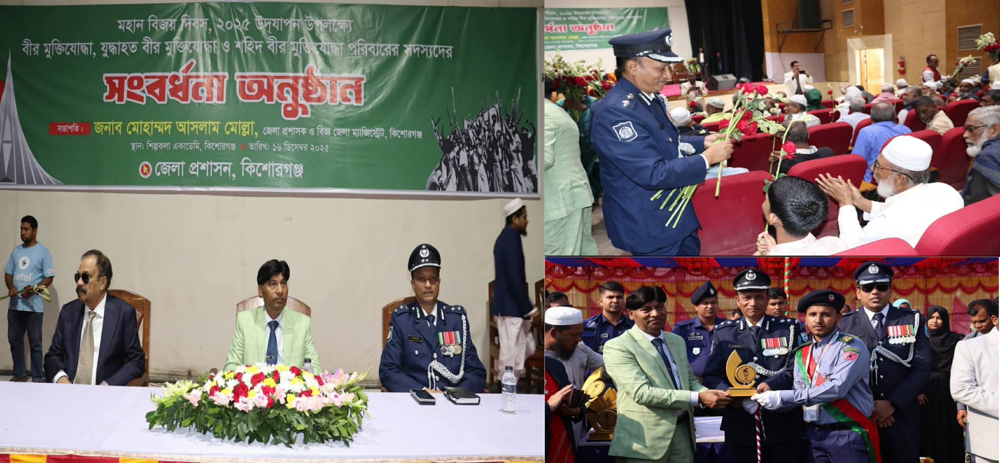 বিজয় দিবস-২০২৫ উপলক্ষে কিশোরগঞ্জে কুচকাওয়াজ ও মুক্তিযোদ্ধাদের সংবর্ধনা