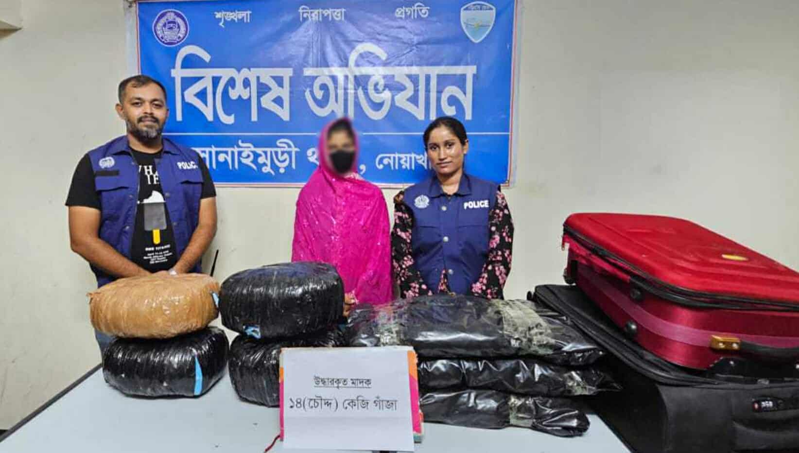 গ্রেফতার এড়াতে বাস পাল্টায়,গন্ধে ১৪ কেজি গাঁজাসহ ধরা খেল তরুণী