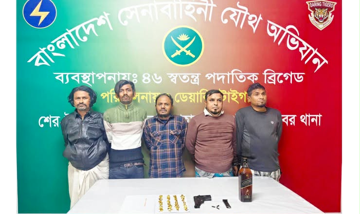 মোহাম্মদপুরে সেনা অভিযানে বিদেশি পিস্তল ও পেট্রোল বোমা উদ্ধার,গ্রেফতার ৫