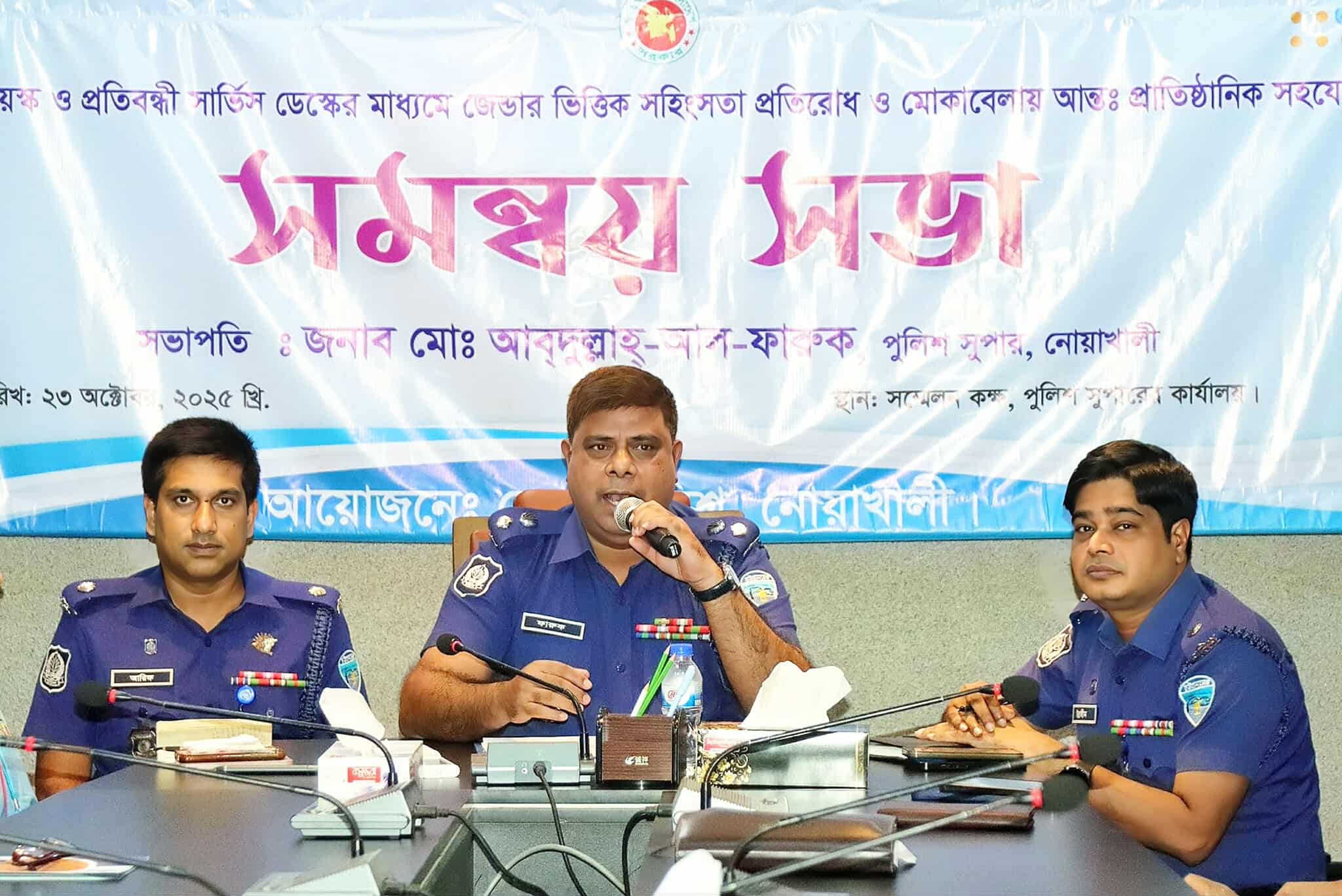 নিজস্ব প্রতিবেদক,সোনালী খবর নারী,শিশু,বয়স্ক ও প্রতিবন্ধী সার্ভিস ডেক্সের মাধ্যমে জেন্ডারভিত্তিক সহিংসতা প্রতিরোধ ও মোকাবেলায় আন্তঃপ্রাতিষ্ঠানিক সহযোগিতা জোরদারের লক্ষ্যে নোয়াখালীতে এক