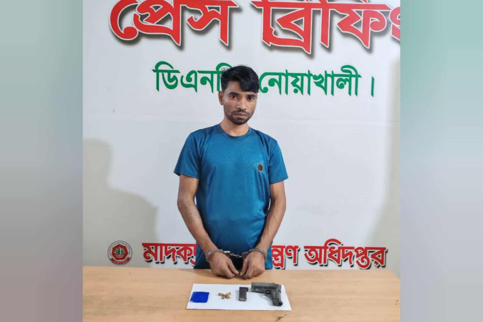 নোয়াখালীতে পিস্তল-গুলিসহ মাদক কারবারি গ্রেফতার