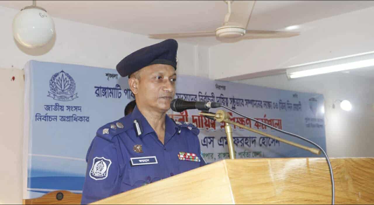 শান্তিপূর্ণ ও সুষ্ঠু নির্বাচন নিশ্চিত করাই রাঙ্গামাটি জেলা পুলিশের লক্ষ্য: এসপি ফরহাদ হোসেন
