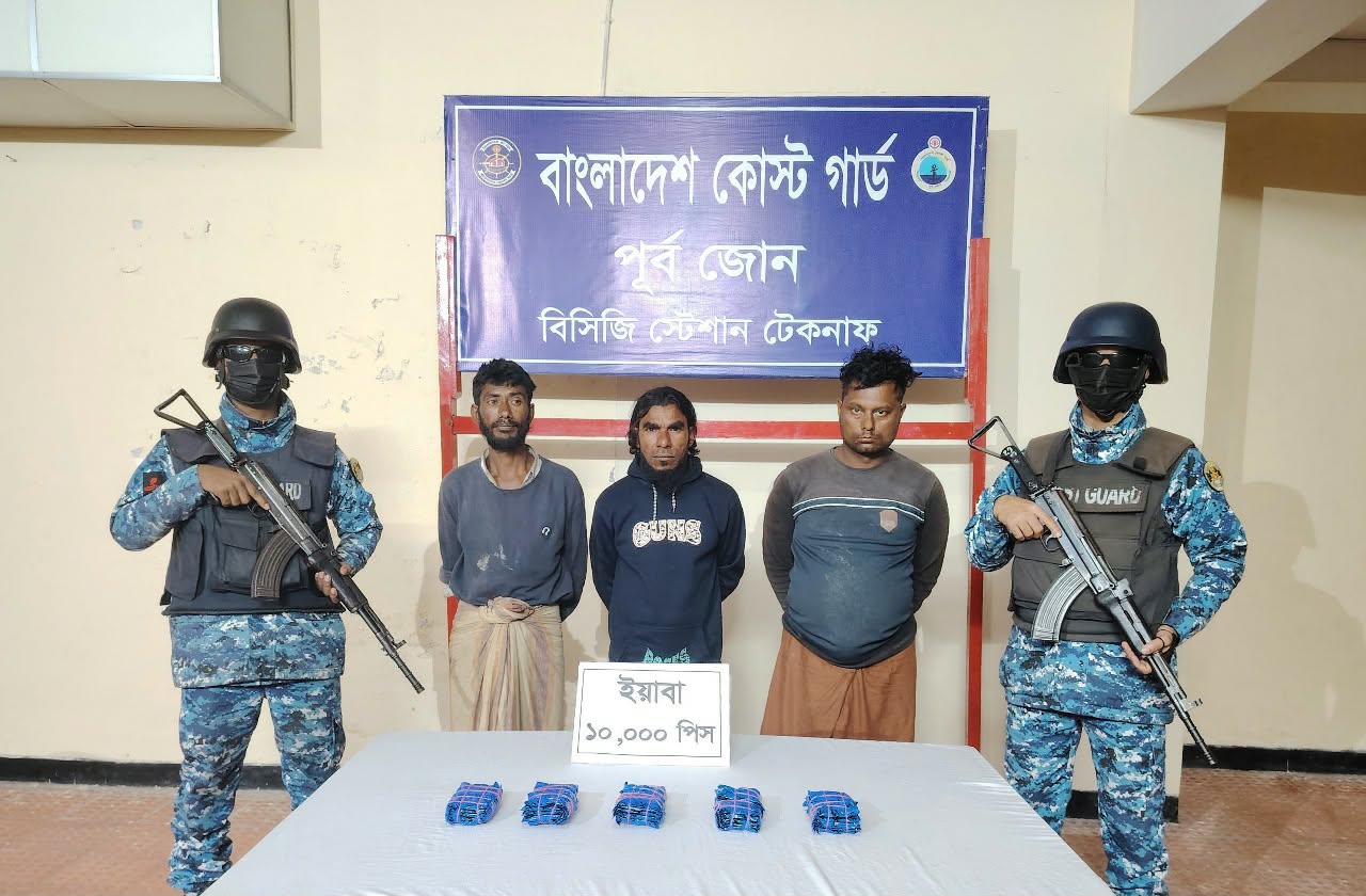 টেকনাফে কোস্ট গার্ডের অভিযানে ১০ হাজার পিস ইয়াবাসহ আটক ৩