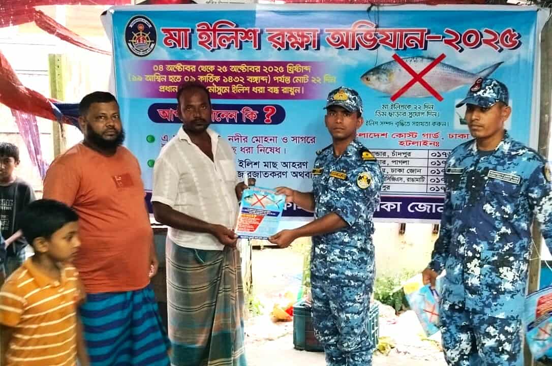 চাঁদপুরে মা ইলিশ সংরক্ষণে কোস্ট গার্ডের সচেতনতা কার্যক্রম