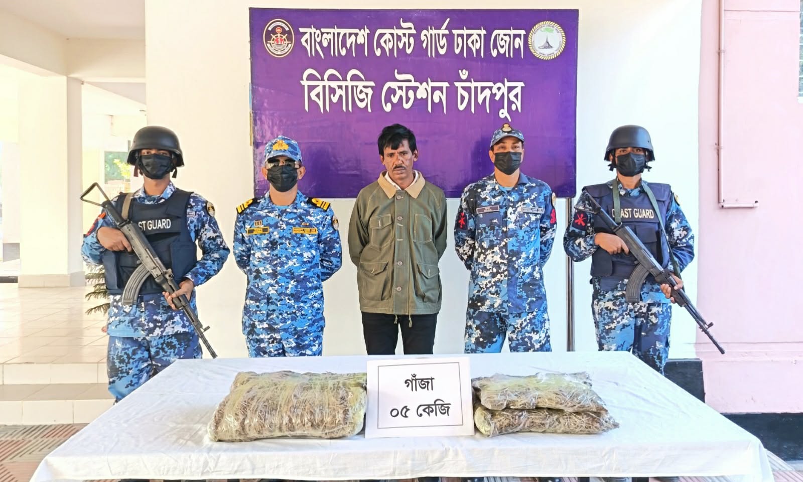 চাঁদপুরে কোস্ট গার্ডের অভিযানে ৫ কেজি গাঁজাসহ মাদক কারবারি আটক