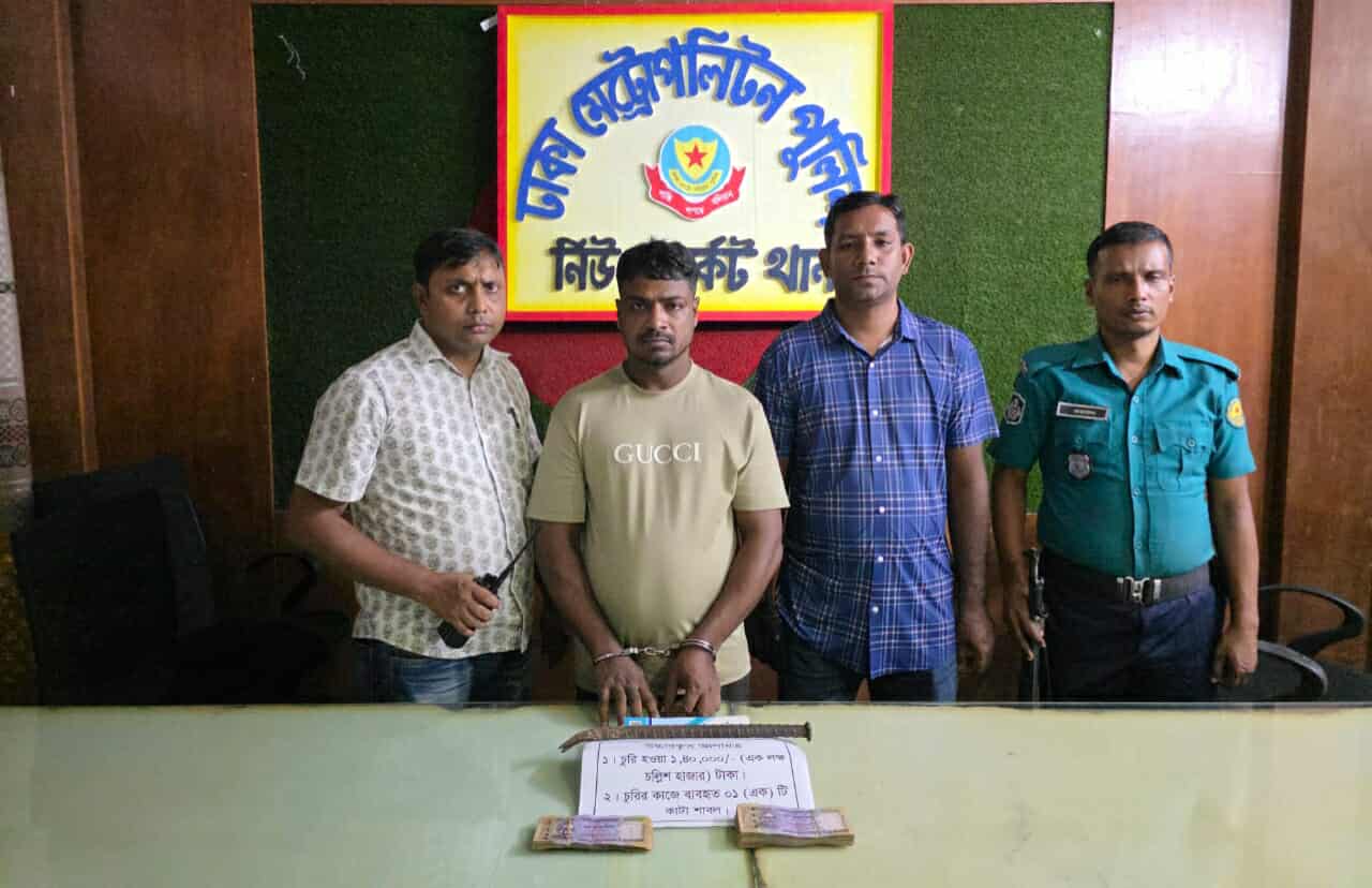 নিউমার্কেট সিটি কমপ্লেক্সে তালা ভেঙে ২১ লাখ টাকা চুরি, আসামি গ্রেফতার,নগদ অর্থ উদ্ধার