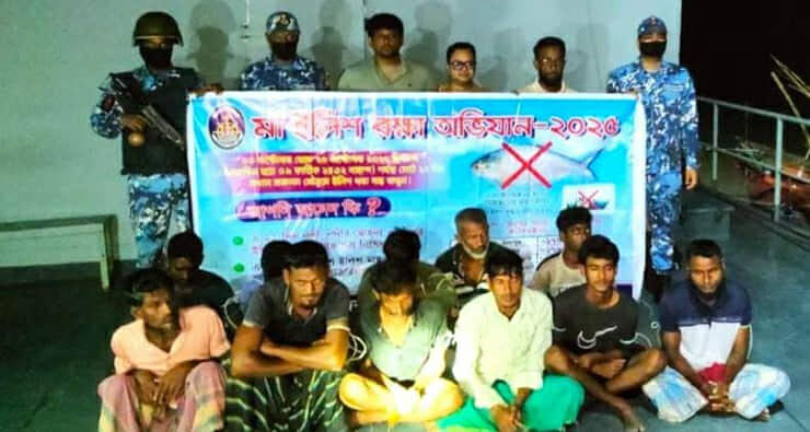 চাঁদপুরে অবৈধ কারেন্ট জাল ও বোটসহ ১১ জেলে আটক