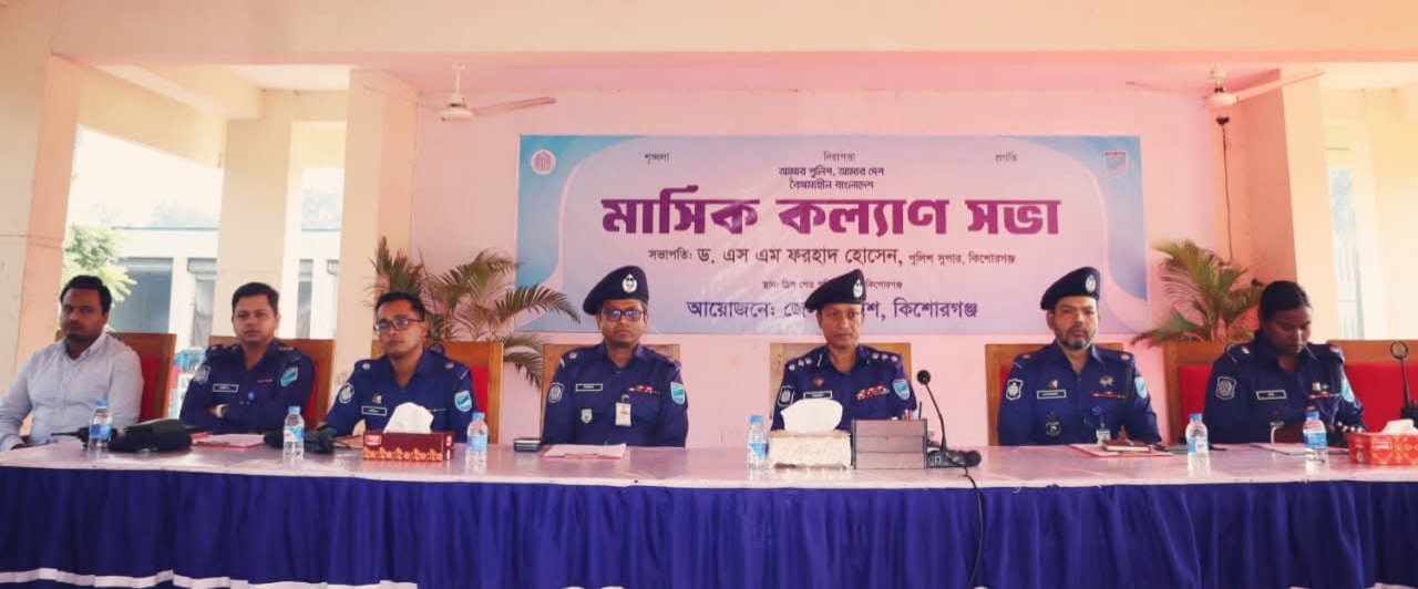কিশোরগঞ্জে জেলা পুলিশের মাসিক কল্যাণ ও অপরাধ পর্যালোচনা সভা অনুষ্ঠিত