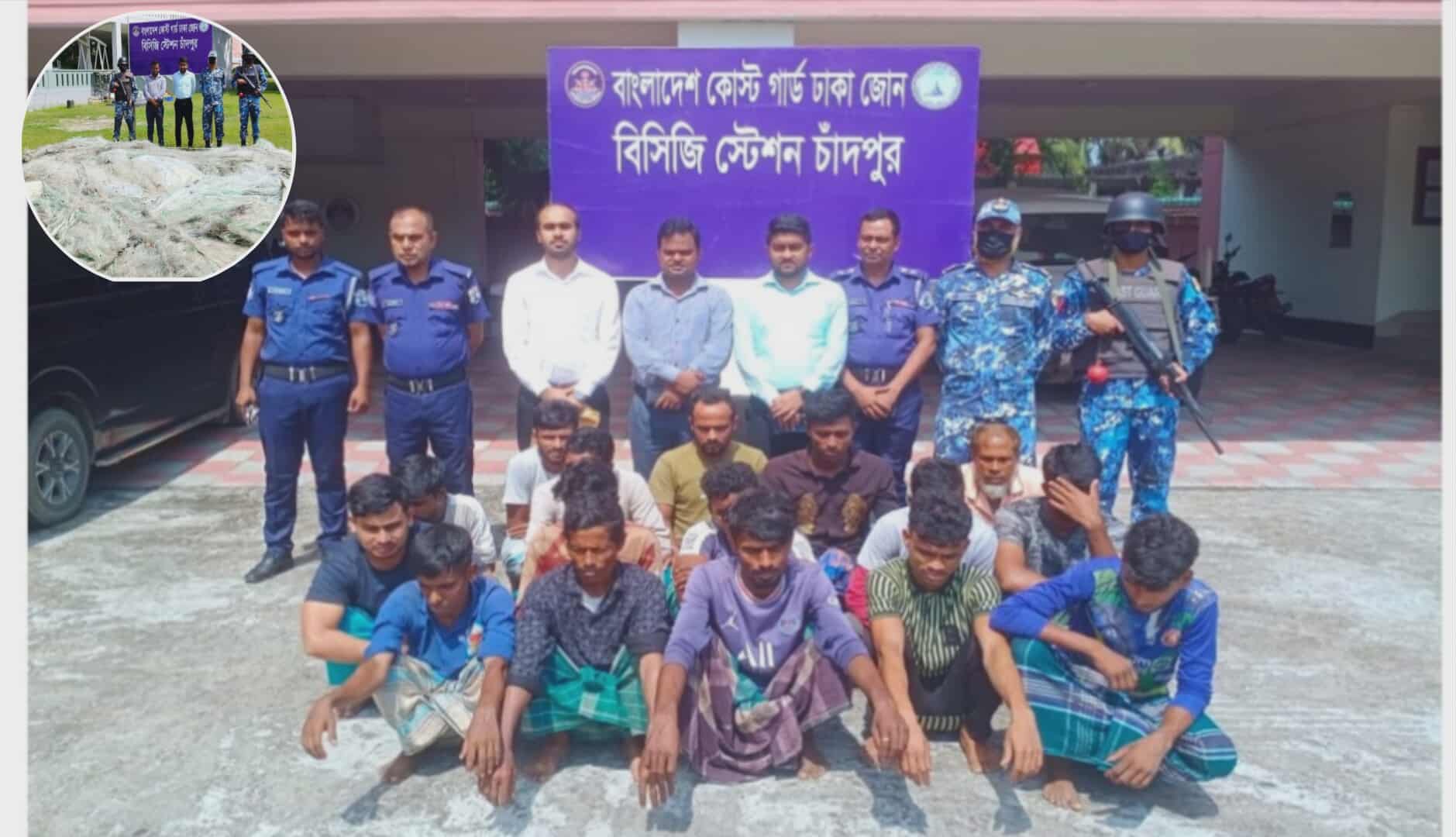 কোস্ট গার্ডের অভিযান: মেঘনায় নদীতে অবৈধ জাল ও বোটসহ ১৭ জেলে আটক