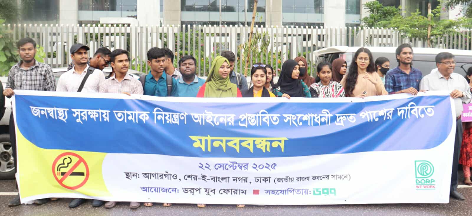 তামাক নিয়ন্ত্রণ আইনের প্রস্তাবিত সংশোধনী দ্রুত পাশের দাবি ডব়্প যুব ফোরামের